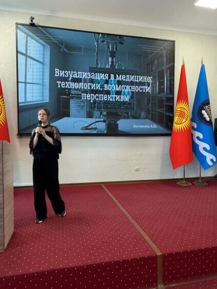 01 сентября 2025 года в Иссык-Кульском государственном университете имени Касыма Тыныстанова состоялась гостевая лекция декана факультета медицинской инженерии Кыргызской государственной медицинской академии имени И.К. Ахунбаева (КГМА) Богомолец Ксения Юрьевны. Лекция была прочитана для студентов второго курса медицинского факультета ИГУ на тему: «Визуализация в медицине: технологии, возможности, перспективы».