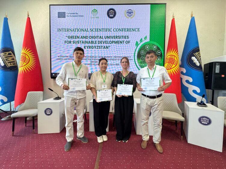 Проект Erasmus+ Green KG реализуется при поддержке Европейского Союза и направлен на создание сети «зелёных» и цифровых офисов в университетах Кыргызстана, разработку новых курсов по устойчивому развитию, а также укрепление сотрудничества между вузами Кыргызстана и ЕС в области устойчивых образовательных практик.