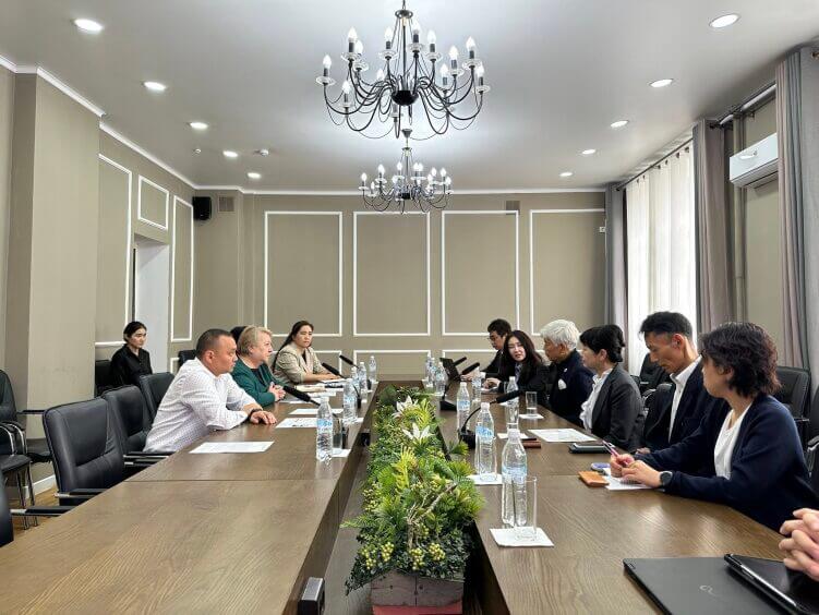 В составе японской делегации — председатель медицинской корпорации КНИ господин Сигэми Китахара с супругой Юкако Китахара, а также представители компании «Kitahara Medical Strategies International» и Центра «Yakuzemi». В зале царила рабочая, но дружеская атмосфера: стороны обменялись приветствиями, после чего гости смогли ознакомиться с фильмом о КГМА, а кыргызская сторона — с деятельностью и достижениями больницы Китахара.