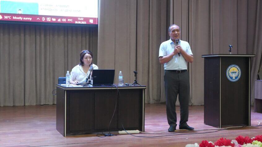 26 августа 2025 года в актовом зале главного корпуса Кыргызской государственной медицинской академии имени И.К. Ахунбаева (КГМА) состоялась встреча с председателем Национальной комиссии по государственному языку и языковой политике М.К. Мураталиевым.